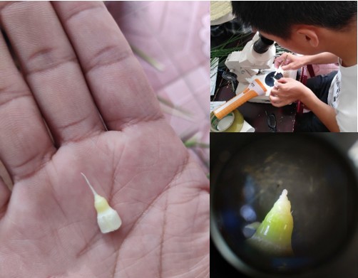 過去的七月,唐家坊繁忙而又熱情洋溢,簡單卻也充實。從月初觀葉齡,到月中查花期,再到月末去雜株,日日夜夜,隆平人的身影與汗水,遍灑唐家坊的水稻田間。 七月上旬,我們一起觀察各組合水稻的葉齡,對做過標記的父母本進行觀察記錄,并在基地的葉齡記載表上登記。葉齡記載作為生產過程中最重要的工作之一,不僅可以反映各組合的生長特性和生長進程,亦可以為來年制種生產技術方案作參考依據。 七月中旬,一個接一個的組合陸續(xù)進期了,我們的工作重心也開始轉到花期觀測上?;ㄆ谙嘤鍪请s交水稻制種高產的保證,因此我們需要時刻關注父母本的花期情況,以便花期出現(xiàn)偏差時及時通知農戶采取措施(追施肥料、重曬田等)進行調節(jié),促使父母本達到理想花期。唐家坊基地組合多,面積大,每天要看的點和樣本數(shù)量多,而有時為了佐證個別組合的花期情況,我們的工作量會隨之加大,觀測點可能由平時的3-5個點增加到10個點左右。在花期觀察過程中,我們需要有目的選取了每兜最快的,每片最有代表性的田塊進行取樣,以保證我們所觀察的花期正確性。 幼穗觀察初期,具體情況的觀察肉眼無法看到,所以需要將取的樣本帶回基地,進行幼穗剝檢,并在解剖鏡下進行觀察,最后記錄余葉數(shù)和花期情況,以便分析判斷。 過了幼穗觀測1-2期,后面的花期特征比較明顯且能在肉眼下就可以就行觀察,這個時候我們一般都是選擇在田間直接剝開觀察。 七月下旬,花期觀測的工作已接近尾聲,田間雜株的清除開始成為我們的首要任務。純度是種子質量的一個重要指標,所以水稻生長過程中的雜株清除工作顯得尤為重要。由于個別組合的雜株較多,我們請了當?shù)氐呐?,將株型、葉型不一樣的異形株以及早熟株進行清除,我們則隨后清理遺漏的雜株并統(tǒng)計第一次除雜后的田間含雜率。在經過女工的初次清除以及我們的復查,田間含雜率都降到了公司的標準之內,制種田也呈現(xiàn)出它應有的整整齊齊。 縱然烈日當頭,抑或大雨傾盆,或是狂風突起,隆平人始終堅守在此。 手心捧不下這一方熱土,便將它埋藏在炙熱的心底,用汗水來澆灌,用關切來施肥,陪它看晴空萬里,陪它念山色新雨,陪它走過這花開花落又一個四季輪回,至始如一,不退卻,不懈怠。雖然它從來一言不發(fā),但是七月,是我和它的語言。