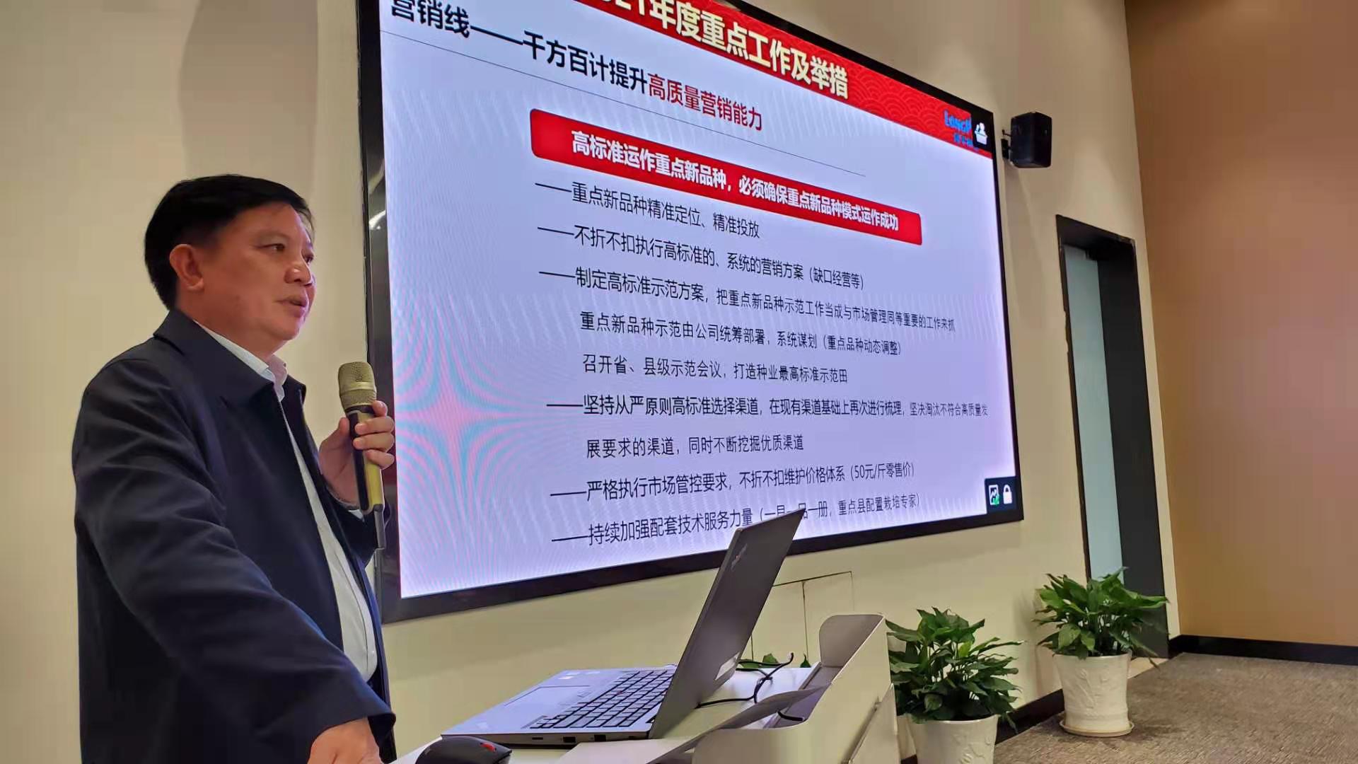 重點(diǎn)新品種的運(yùn)作和市場(chǎng)管控是實(shí)現(xiàn)公司高質(zhì)量發(fā)展的基石。會(huì)上,公司銷(xiāo)售總監(jiān)盧成林、劉俊就重點(diǎn)新品種運(yùn)作規(guī)則、市場(chǎng)管控分別做了專(zhuān)項(xiàng)報(bào)告。盧成林總監(jiān)在報(bào)告中