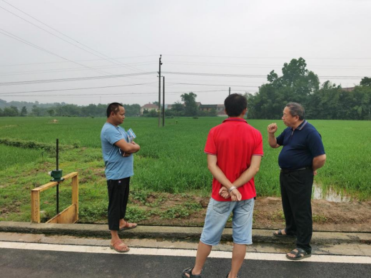 公司栽培專家程小潑督查冠兩優(yōu)華占示范片 。