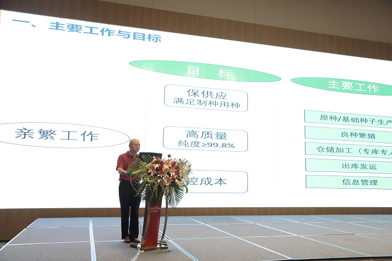 隨后,總農(nóng)藝師劉愛民、人事財務(wù)總監(jiān)楊震宇、生產(chǎn)質(zhì)量總監(jiān)鐘其全分別就親繁線、綜合財務(wù)線、生產(chǎn)加工線做了專項報告。劉總對種子生產(chǎn)加工技術(shù)研發(fā)工作做了詳細(xì)介紹,他提出公司通過新組合高質(zhì)高產(chǎn)制種技術(shù)、機(jī)械化制種技術(shù)、親本保純穩(wěn)產(chǎn)繁殖技術(shù)等技術(shù)攻關(guān)為解決雜交水稻種子市場發(fā)芽率難題帶來希望。楊總監(jiān)指出將以健康的財務(wù)指標(biāo)為統(tǒng)領(lǐng),圍繞聚焦提質(zhì)增效,以防范風(fēng)險為前提,以數(shù)據(jù)信息分析為基礎(chǔ),打造高質(zhì)量人力資源隊伍,提升精細(xì)化管理水平,提升體系化的基礎(chǔ)管理能力和服務(wù)能力;鐘總表示將嚴(yán)格按照公司高質(zhì)量發(fā)展理念,圍繞