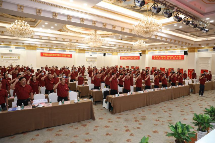 上臺(tái)與公司總經(jīng)理廖翠猛先生簽訂了市場(chǎng)管控協(xié)議,同時(shí)全體參會(huì)人員就市場(chǎng)管控進(jìn)行了莊嚴(yán)宣誓。