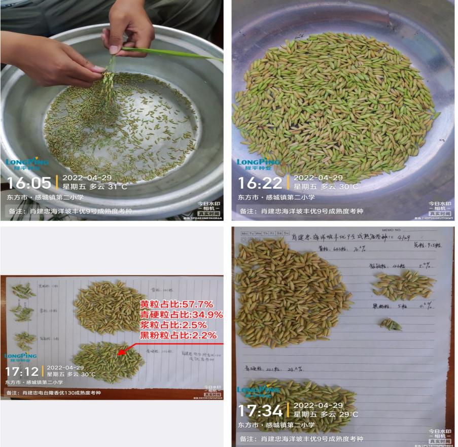 根據(jù)噴施九二O時間及田間情況,取具有代表性的3蔸田塊進行脫??汲墒於?,結(jié)合天氣情況,待到7-8成熟收割。