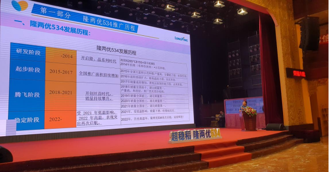 隨后,會議由隆平種業(yè)總經(jīng)理助理、隆平品牌負責人黃年豐帶來以隆兩優(yōu)534推廣歷程為核心的《榮耀八載黃金十年、開創(chuàng)種業(yè)絲苗時代》分享。報告從隆兩優(yōu)534推廣歷程、共同成長以及展望未來三個方面闡釋了隆兩優(yōu)534從起步到輝煌的發(fā)展歷程,同時指出立足當下,憑借超穩(wěn)的品種表現(xiàn)、強勢的活動力度、嚴格市場管控,定能再創(chuàng)隆兩優(yōu)534輝煌,迎接下一個黃金十年,助力隆平下一代超級大單品的打造。