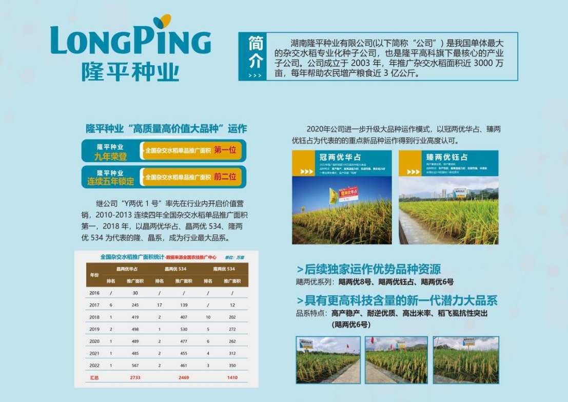 2022年推廣面積567萬(wàn)畝,排名雜交水稻年推廣面積第一名;
