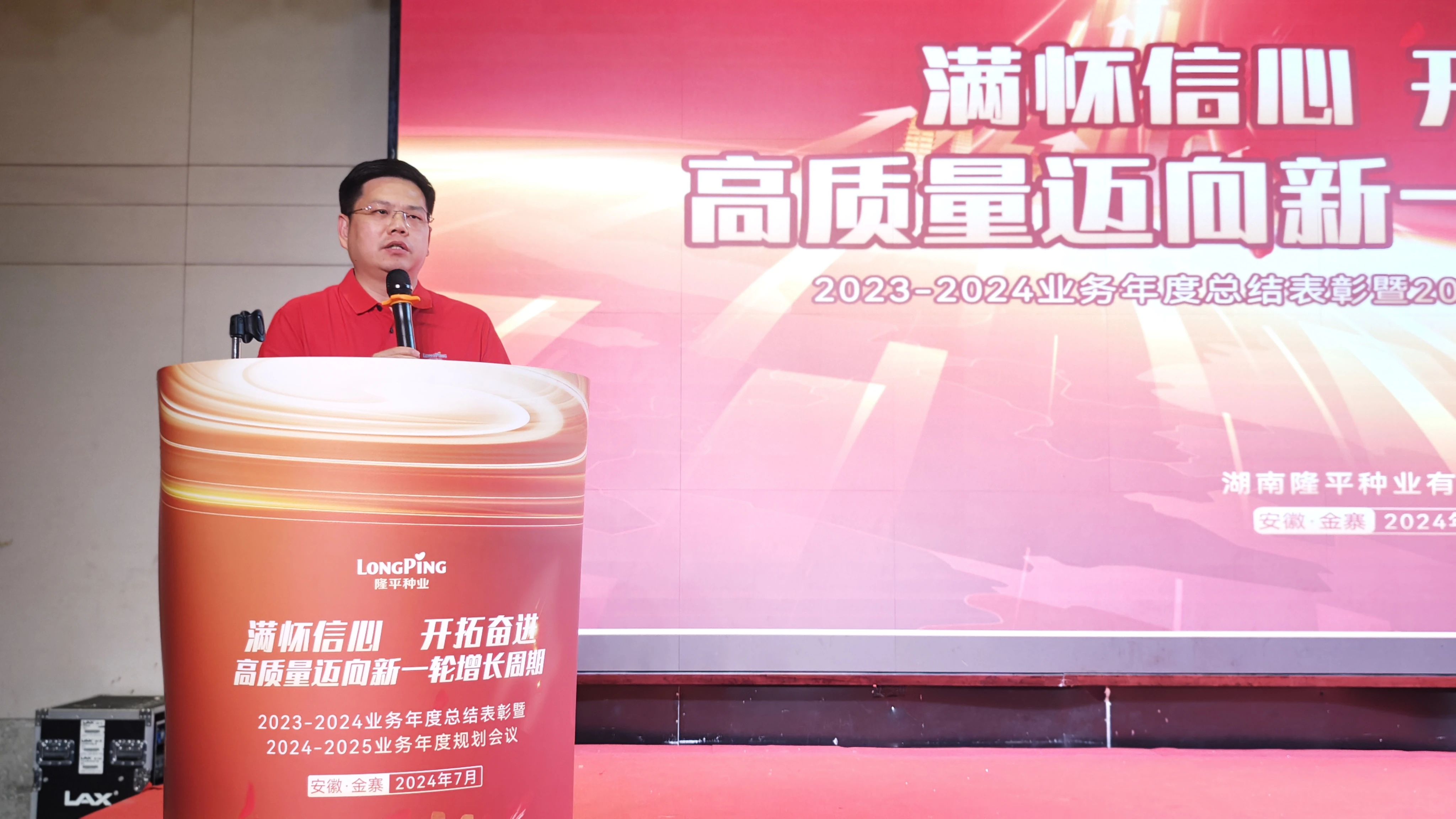 會上,盧成林總經(jīng)理充分肯定了全體隆平人在23-24業(yè)務(wù)年度工作中取得的成績,并表示公司將在集團(tuán)的正確領(lǐng)導(dǎo)下,堅(jiān)定不移地走高質(zhì)量發(fā)展路線。盧總?cè)娣治隽水?dāng)前面臨的挑戰(zhàn)和機(jī)遇,他強(qiáng)調(diào),公司當(dāng)前正處于重大發(fā)展機(jī)遇期,全體隆平人要滿懷信心,開拓奮進(jìn),把握形勢搶抓機(jī)遇,高質(zhì)量邁向新一輪增長周期。盧總明確了公司24-25業(yè)務(wù)年度的指導(dǎo)思想和目標(biāo),并就下階段工作進(jìn)行了系統(tǒng)部署。他指出大營銷線要聚焦打造新一代大單品、大品系,以增量帶動存量,搶抓市場機(jī)遇,實(shí)現(xiàn)總銷量進(jìn)一步增長;服務(wù)保障線要圍繞“五維增效”機(jī)制建設(shè),進(jìn)一步提升服務(wù)效能,激發(fā)團(tuán)隊(duì)活力。盧總向全體隆平人提出五點(diǎn)希望和要求:1.銘記初心,傳承隆平精神,做一個正能量、守紀(jì)律、負(fù)責(zé)任、有使命的隆平人;2.持續(xù)提升客戶與公司合作的體驗(yàn),為客戶創(chuàng)造價值;3.每位員工都要有主人翁意識,充分認(rèn)識到降本增效是每一位隆平人的事,實(shí)現(xiàn)銷量最大化、費(fèi)用最小化;4.根據(jù)公司指導(dǎo)思想,結(jié)合自己工作目標(biāo),系統(tǒng)謀劃全年工作,做到有目標(biāo)、有思路、有方案、有執(zhí)行;5.堅(jiān)定信念、實(shí)事求是、艱苦奮斗、勇于勝利。全體隆平人要同心協(xié)力,在新一輪增長周期中,將公司做得更穩(wěn)、更強(qiáng)、更大!