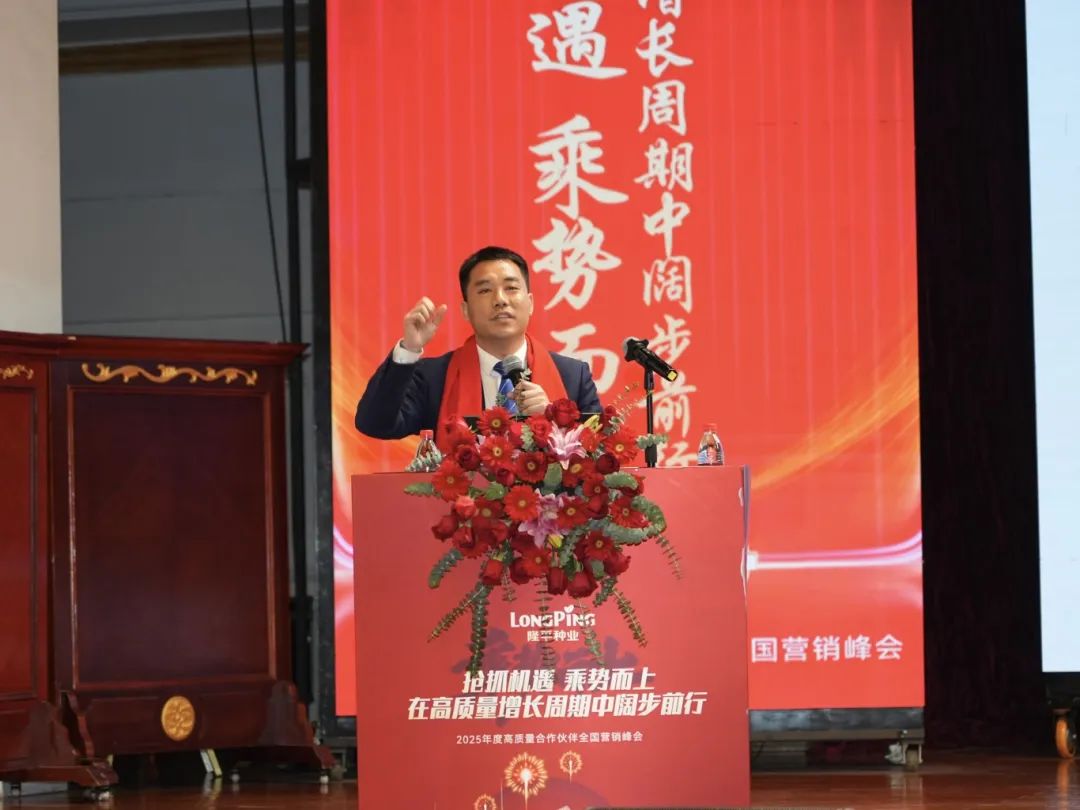 會(huì)議最后,隆平種業(yè)總經(jīng)理盧成林作《搶抓機(jī)遇 乘勢(shì)而上 在高質(zhì)量增長(zhǎng)周期中闊步前行》主題報(bào)告。盧總表示,今天會(huì)議的各項(xiàng)分享充分彰顯了隆平種業(yè)擁有一支強(qiáng)大的代理商隊(duì)伍和員工隊(duì)伍,當(dāng)前公司品種資源達(dá)到歷史最強(qiáng),颶兩優(yōu)系列高質(zhì)量運(yùn)作模式得到市場(chǎng)高度認(rèn)可。同時(shí),盧總指出,過去一年公司各項(xiàng)指標(biāo)實(shí)現(xiàn)了高質(zhì)量增長(zhǎng),颶兩優(yōu)系列運(yùn)作模式取得巨大成功,種糧一體化運(yùn)作、大單品核心市場(chǎng)基本盤穩(wěn)定、早熟中稻市場(chǎng)布局等方面都取得了優(yōu)異成績(jī)。盧總強(qiáng)調(diào),“中國(guó)種業(yè)的領(lǐng)跑者 農(nóng)業(yè)服務(wù)的旗幟”是公司的愿景和定位,隆平種業(yè)有責(zé)任、有義務(wù)、有能力、有實(shí)力引領(lǐng)行業(yè)發(fā)展,公司將持續(xù)構(gòu)建體系化競(jìng)爭(zhēng)優(yōu)勢(shì),與全體合作伙伴一起打破行業(yè)內(nèi)卷。就2025年度工作,明確了舉全公司之力快速將颶兩優(yōu)系列打造成高質(zhì)量大品系、深入推進(jìn)種糧一體化、加大早熟市場(chǎng)、高端優(yōu)質(zhì)稻等細(xì)分市場(chǎng)的快速突破等工作目標(biāo)。