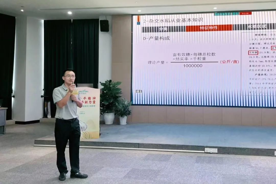 技術服務部總經理肖燃以《雜交水稻基礎知識——水稻的一生》為主題,生動解析了雜交水稻分類、特性、區(qū)試、三蟲兩病等專業(yè)知識,現場新員工們積極主動參與討論,精準把握產品特性。