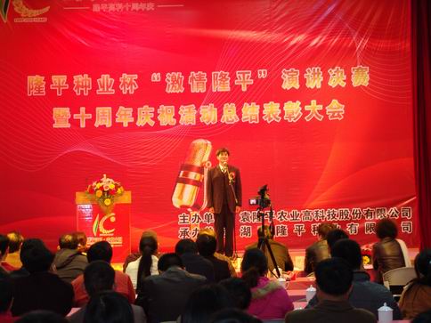 (圖為演講賽決賽現(xiàn)場(chǎng)) 11月13日下午,隆平種業(yè)杯“激情隆平”演講決賽暨征文大賽頒獎(jiǎng)典禮在長(zhǎng)沙天園假日中心隆重舉行,共有來(lái)自隆平高科系統(tǒng)內(nèi)各分/子公司170余名員工觀眾參加。 此次“激情隆平”征文與演講比賽由隆平高科牽頭,隆平種業(yè)承辦,自2009年9月份啟動(dòng)以來(lái),得到了系統(tǒng)內(nèi)眾多分子公司的關(guān)注和參與,大家紛紛踴躍投稿,積極參賽。本次征文賽只收到全國(guó)各地稿件共98篇,通過(guò)組委會(huì)層層篩選,最終評(píng)選出一等獎(jiǎng)3名、二等獎(jiǎng)6名,三等獎(jiǎng)12名,特別獎(jiǎng)5名,我公司傅前鋒、劉俊、陳科軍、胡小鋒、楊瑞娟分獲一、二、三等獎(jiǎng),經(jīng)銷商代表王中海、韋廣厚獲優(yōu)勝獎(jiǎng)。 在演講比賽現(xiàn)場(chǎng),闖進(jìn)決賽的19位選手一一登臺(tái),揮灑激情,展露風(fēng)采,他們或慷慨激昂,或聲情并茂,現(xiàn)場(chǎng)不時(shí)響起熱烈的掌聲。最終,通過(guò)激烈的角逐,評(píng)選出一等獎(jiǎng)2名,二等獎(jiǎng)3名,三等獎(jiǎng)5人,我公司選手周武承、盧嬌分獲二、三等獎(jiǎng)。 此次大賽也為隆平高科十周年慶系列活動(dòng)劃上了一個(gè)完美的句話。在十周年慶活動(dòng)總結(jié)表彰過(guò)程中,隆平種業(yè)榮獲“優(yōu)秀成果獎(jiǎng)”,公司人事行政總監(jiān)范小兵等4人榮獲“優(yōu)秀組織者獎(jiǎng)”的榮譽(yù)稱號(hào)。 公司董事長(zhǎng)袁定江出席會(huì)議并對(duì)此次活動(dòng)給予了高度評(píng)價(jià),他指出,在今后的企業(yè)文化工作中,要發(fā)動(dòng)更多的員工,尤其是公司的中高層領(lǐng)導(dǎo)更深入的參與到企業(yè)文化的各項(xiàng)活動(dòng)中,為公司企業(yè)文化建設(shè)做出貢獻(xiàn)。