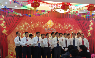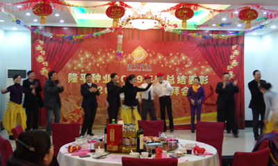 總結(jié)表彰后,公司員工還自編自導(dǎo)了多個(gè)精彩紛呈的文藝節(jié)目。各部門、分子公司員工的詩朗誦、獨(dú)唱、大合唱以及啞劇和舞蹈都贏得了現(xiàn)場觀眾的陣陣掌聲。節(jié)目最后,全體與會高管上臺參與舞蹈《印度新娘》,將活動推上了高潮。