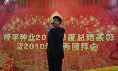 虎步奔騰開勝景,春風(fēng)浩蕩展鴻圖。2010年2月7日,農(nóng)歷小年,雜交水稻研究中心一樓宴會廳內(nèi),張燈結(jié)彩,春意融融,處處洋溢著喜慶。隆平種業(yè)在此隆重舉行2009年度總結(jié)表彰暨2010年新春團(tuán)拜會。隆平高科袁定江副董事長、周丹總監(jiān),公司全體經(jīng)營班子成員和全體在長員工共100多人參加此次盛會。