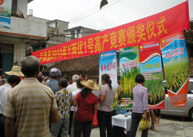 本次活動有三大內(nèi)容,2010年度Y兩優(yōu)1號高產(chǎn)競賽頒獎、2011年Y兩優(yōu)1號高產(chǎn)競賽活動啟動和現(xiàn)場有獎銷售。