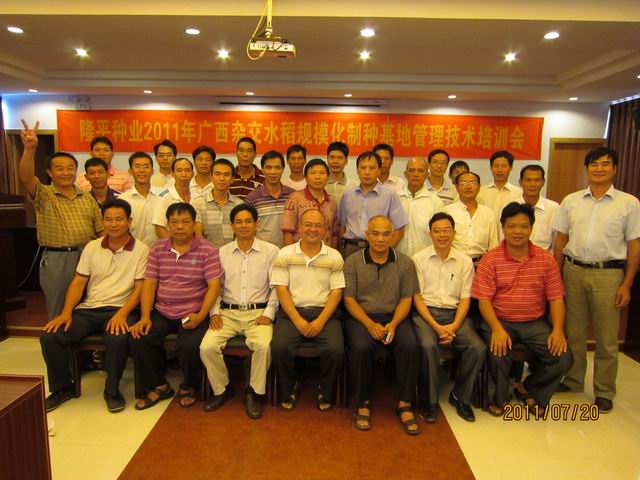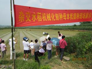 7月20日,生產(chǎn)中心廣西基地2011年雜交水稻規(guī)?;品N管理技術(shù)培訓(xùn)暨母本機插秧制種現(xiàn)場展示會在廣西南寧成功舉行,來自廣西生產(chǎn)基地的生產(chǎn)商和技術(shù)員及江西、廣東的生產(chǎn)商代表共35人參加了培訓(xùn)。
