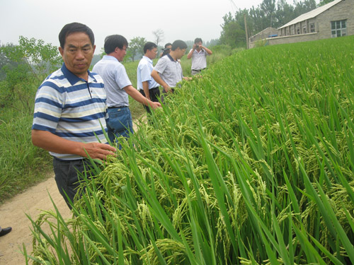 在示范田間,袁院士詳細詢問分蘗、施肥、穗粒數(shù)等高產(chǎn)相關(guān)情況,公司高管譚總在觀摩現(xiàn)場對兩優(yōu)1128的田間示范表現(xiàn)及在各地的推廣情況向袁老師作了匯報,信陽地區(qū)農(nóng)業(yè)部門負責(zé)人在匯報過程中也多次提到:“看到了水稻高產(chǎn)再上新臺階的希望,對于這個品種(兩優(yōu)1128)我們充滿信心!”袁院士還與慕名而來的公司經(jīng)銷商代表們親切合影留念。
