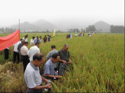 喜報:9月8日,贛西團隊在袁州區(qū)金瑞鎮(zhèn)鳳山村成功召開了超級稻Y兩優(yōu)1號專場觀摩會,觀摩效果十分喜人!引用一位大伯的話“種禾35年了,都沒見過這么高的結(jié)實率!基本都沒有蔫谷”