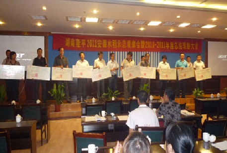 下午,2010—2011年度總結(jié)表彰大會在巢旅98大酒店召開。首先,由隆平種業(yè)營銷中心副經(jīng)理鐘其全對公司的現(xiàn)有品種和后續(xù)品種做了詳細(xì)的介紹。鳳陽代理商代表高偉就和公司合作四年來的收獲及新品種的推廣經(jīng)驗(yàn)作了典型發(fā)言,無保留地分享了他的成功經(jīng)驗(yàn)和技巧。隨后,安徽營銷中心劉俊經(jīng)理作了“安徽省2010-2011營銷年度總結(jié)工作及2011—2012年度運(yùn)作思路的報(bào)告”,在總結(jié)上年度銷售工作所取得成績的同時(shí),對下年度的銷售工作提出了新的目標(biāo)計(jì)劃,并對接下來的工作做了部署安排。
