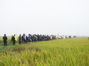 其次,經(jīng)銷(xiāo)商和農(nóng)戶(hù)還一起觀(guān)摩了公司的晚稻新品種深優(yōu)9586、豐源優(yōu)2297,大家對(duì)這兩個(gè)晚稻品種的株葉形態(tài),耐寒性,抗倒伏能力和產(chǎn)量也大加贊賞。