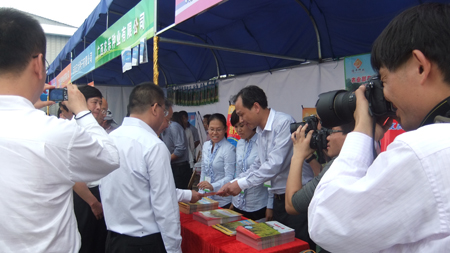 會(huì)議現(xiàn)場(chǎng),農(nóng)業(yè)部原部長(zhǎng)陳耀邦,國(guó)家農(nóng)技中心夏敬源主任、自治區(qū)政協(xié)農(nóng)業(yè)委員會(huì)黎梅松主任、自治區(qū)農(nóng)業(yè)廳張明沛廳長(zhǎng)、中國(guó)水稻所程式華所長(zhǎng),南寧市肖志鋼副市長(zhǎng)、廣西農(nóng)科院陳彩虹副院長(zhǎng)、南寧市農(nóng)業(yè)局唐波文局長(zhǎng)等領(lǐng)導(dǎo)來(lái)到我司的展臺(tái)前,查閱了超級(jí)稻的宣傳資料,肯定了隆平種業(yè)過(guò)去的成績(jī),也勉勵(lì)我們?cè)俳釉賲?,不斷推陳出新,育出更好的品種服務(wù)農(nóng)民。