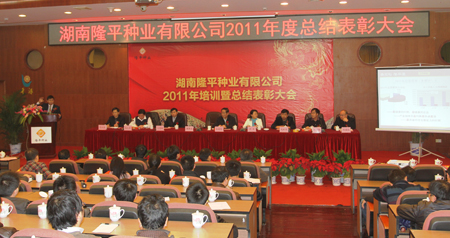 工作總結(jié)表彰大會(huì)由公司副總經(jīng)理?xiàng)钗男侵鞒?。總?jīng)理廖翠猛做《隆平種業(yè)2011年度工作報(bào)告》,報(bào)告從2011年度公司整體運(yùn)營(yíng)情況、公司重點(diǎn)亮點(diǎn)工作等方面回顧了2011年度公司的主要工作,并對(duì)2012年的主要工作和即將采取的舉措進(jìn)行了計(jì)劃和安排,報(bào)告指出:2011年公司取得了較好的成績(jī),各部門工作都有較為突出的進(jìn)步,圓滿地完成了戰(zhàn)略目標(biāo)任務(wù),全面進(jìn)入銷售收入和利潤(rùn)快速增長(zhǎng)期,是公司自始以來(lái)最健康、產(chǎn)業(yè)鏈體系最均衡最協(xié)調(diào)最強(qiáng)、最具備持續(xù)發(fā)展能力的時(shí)期。作為全國(guó)最大的雜交水稻專業(yè)化公司,我們必須要有更高的標(biāo)準(zhǔn)、更高的要求工作,明確“高科技品種、高標(biāo)準(zhǔn)質(zhì)量、高水平服務(wù)、高附加值、高水平基礎(chǔ)管理、高水平人力資源隊(duì)伍”六高發(fā)展模式,成為種業(yè)升級(jí)的先帥。