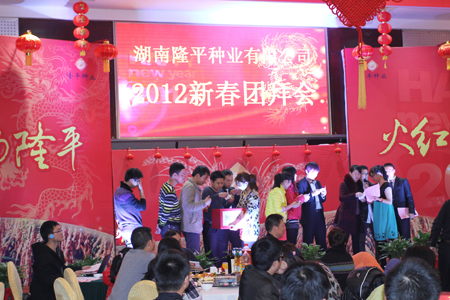 隆開(kāi)盛世新春麗,平展宏圖大業(yè)嬌。揮別碩果累累的2011,隆平種業(yè)迎來(lái)機(jī)會(huì)與挑戰(zhàn)并存的2012。1月15日,公司2011年度總結(jié)表彰暨2012年新春團(tuán)拜會(huì)在長(zhǎng)沙開(kāi)源鑫城大酒店隆重舉行??偛款I(lǐng)導(dǎo)左連生、顏衛(wèi)彬、褚啟人、楊遠(yuǎn)柱、周丹、王德純,公司全體經(jīng)營(yíng)班子成員和全體在長(zhǎng)員工共240多人參加了此次盛宴。