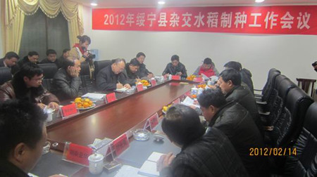 2月14日,綏寧縣農(nóng)業(yè)局組織在縣政府會議室召開了“2012年綏寧縣雜交水稻制種工作會議”,綏寧縣李玉賢副縣長、縣農(nóng)業(yè)局楊梅成局長、我司劉愛民總農(nóng)藝師及亞華種業(yè)、金稻種業(yè)、科裕隆種業(yè)等十多家企業(yè)代表參會。