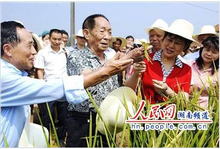 人民網岳陽8月8日電(記者 匡瀅)前日,袁隆平院士帶領專家團隊來到岳陽市營田鎮(zhèn)菱湖村隆平種業(yè)超級稻百畝示范片的超級稻田,袁隆平院士表示,如果后期不出病蟲害及早熟等問題,C兩優(yōu)608超級再生稻和兩優(yōu)1128超級稻的畝產有望達900公斤的平均畝產有望達900公斤。