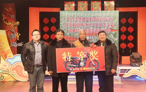 湖北分公司總經(jīng)理姜文嘉在會(huì)上對(duì)獲獎(jiǎng)?wù)弑硎咀YR,為隆平種業(yè)能給廣大種植戶增產(chǎn)增收感到高興并就種業(yè)機(jī)遇給大家做了精彩的演講。天門市華欣種業(yè)總經(jīng)理何三華就隆平種業(yè)新組合廣兩優(yōu)1128向廣大的獲獎(jiǎng)?wù)吆袜l(xiāng)鎮(zhèn)經(jīng)銷商做了介紹,為能為大家推廣好的品種感到榮幸,為大家種出高產(chǎn)感到高興。對(duì)隆平種業(yè)新組合廣兩優(yōu)1128各鄉(xiāng)鎮(zhèn)經(jīng)銷商表現(xiàn)出了極大的興趣。