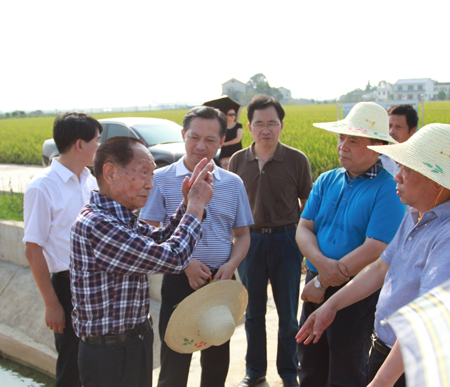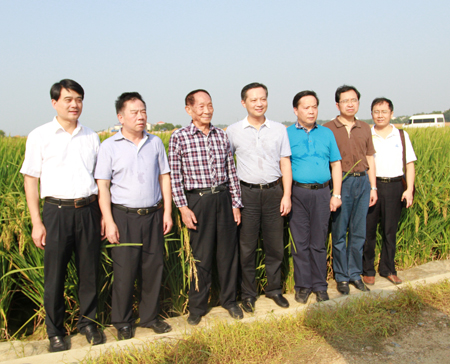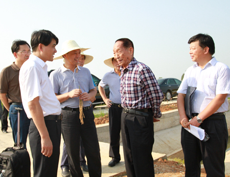 9月17日下午,湖南省人民政府副省長張碩輔,在省政府副秘書長陳吉芳、農(nóng)業(yè)廳廳長劉宗林等陪同下,來到我司位于長沙寧鄉(xiāng)關(guān)山的超級雜交稻新品種展示基地進(jìn)行調(diào)研。雜交水稻中心主任袁隆平院士、省農(nóng)科院黨委書記柏連陽、院長鄒學(xué)校、雜交水稻中心黨委書記羅閏良等接待了張碩輔副省長一行。