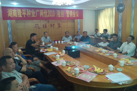9月21日。隆回縣召開了廣兩優(yōu)2010的示范營銷專題會議。縣級代理商梁開明組織該縣28位鄉(xiāng)鎮(zhèn)重點零售商參加。