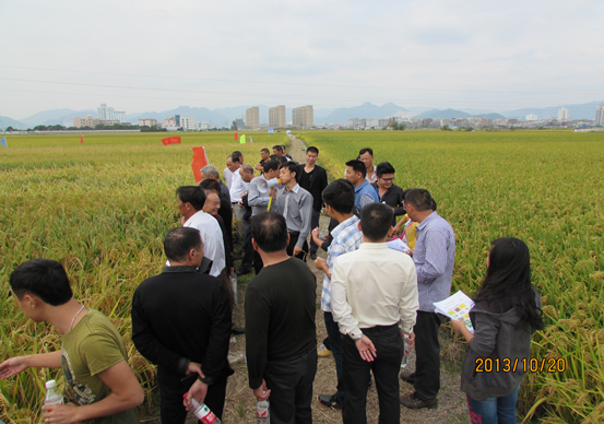 10月20日,浙江溫州市代理商浙江康籃農(nóng)業(yè)科技有限公司成功召開了超級稻C兩優(yōu)608 、廣兩優(yōu)1128 示范觀摩交流會,會議來自全市各鄉(xiāng)鎮(zhèn)的零售商40余位。一大清早40余位客戶已經(jīng)來到了東甌大酒店集合,等待出發(fā)。經(jīng)過一個小時的車程,零售商興致高昂的來到了田間進(jìn)行現(xiàn)場觀摩C兩優(yōu)608 、廣兩優(yōu)1128的示范田,田間會議上我公司張國偉經(jīng)理對C兩優(yōu)608、廣兩優(yōu)1128品種特性、株葉形態(tài)、結(jié)實率、米質(zhì)等方面作了詳細(xì)介紹。
