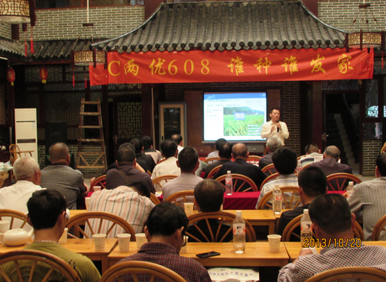 從示范田回來后,又進(jìn)行了室內(nèi)會議交流,室內(nèi)會議主要由李金益經(jīng)理講述了我公司的發(fā)展?fàn)顩r及C兩優(yōu)608、廣兩優(yōu)1128品種的運作思路。針對今年持續(xù)高溫、幾次臺風(fēng)過后的C兩優(yōu)608 、廣兩優(yōu)1128的田間表現(xiàn)做出總結(jié),并對我公司強(qiáng)勢的后續(xù)品種作了簡要介紹。