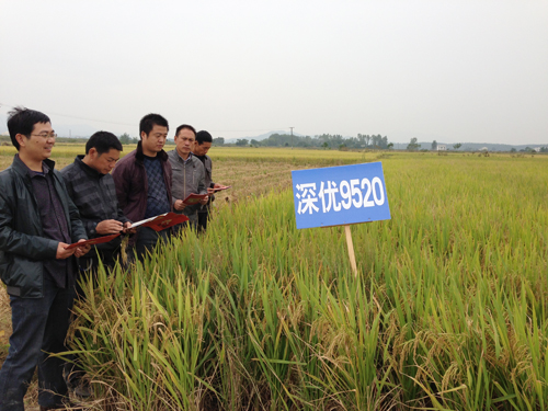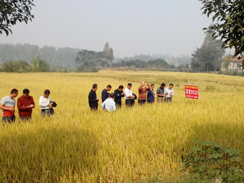 鑒于深優(yōu)9520這個品種在岳陽華容縣以及汨羅市等地的出色表現(xiàn),國慶節(jié)之后,在民生岳陽區(qū)域經(jīng)理胡文的帶動下,岳陽市各個縣代理商積極組織零售商和農(nóng)民觀摩深優(yōu)9520。