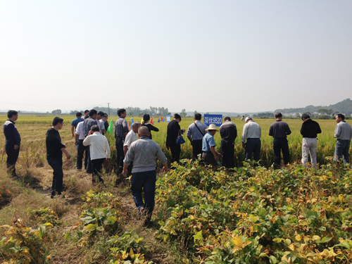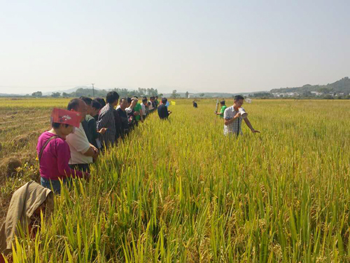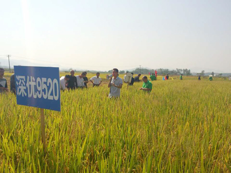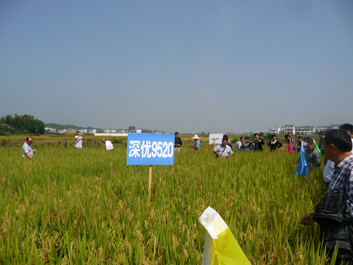 10月9日:華容縣代理商范志杰帶領(lǐng)15位核心零售商觀摩了東山鎮(zhèn)的深優(yōu)9520,另外還組織了近100人/次的農(nóng)民觀摩會。