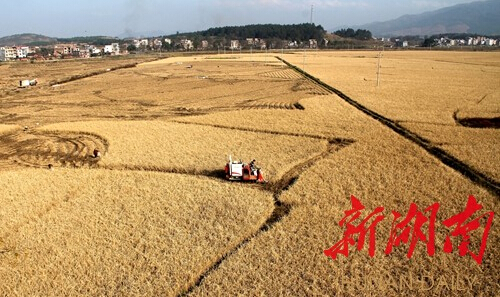 1月3日,寧遠(yuǎn)縣水市鎮(zhèn),村民在收割晚稻。收割的晚稻,水分在14%左右,可以在田間直接賣給米廠碾米。近兩年,水市鎮(zhèn)農(nóng)民探索出“禾上曬谷、延后收割”的種稻模式。他們種植的水稻品種“深優(yōu)9586”可推遲到“冬至”前后收割,每畝節(jié)約曬谷、搬運人工費約90元。2015年,水市鎮(zhèn)“禾上曬谷、延后收割”晚稻推廣種植面積達(dá)1.2萬畝。
