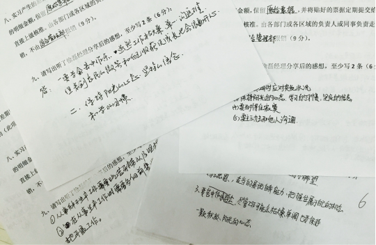 每一天的培訓(xùn)結(jié)束后,會(huì)務(wù)組都會(huì)安排對(duì)實(shí)習(xí)生進(jìn)行考試,并通過(guò)相互閱卷的方式幫助大家回顧一天所學(xué)的知識(shí)。一天的培訓(xùn)下來(lái),大家的感悟也是各不相同。