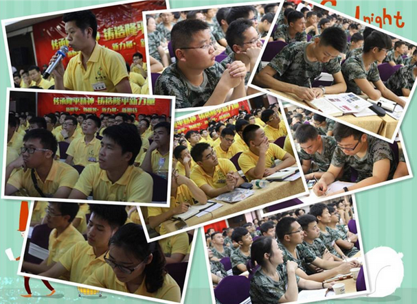 緊張嚴肅,活潑團結。在7天的培訓中,各連隊積極進取,奮勇爭先。經過7天的磨合,每個連隊都有了屬于自己連隊的默契,在最后的團隊匯報中,各連通過一系列匯報活動展現(xiàn)了自己的風采,從團隊士氣展示到優(yōu)秀個人表彰,從圖畫展到才藝展示,各連的精彩匯報給所有的評審官帶來了非常大的驚喜。