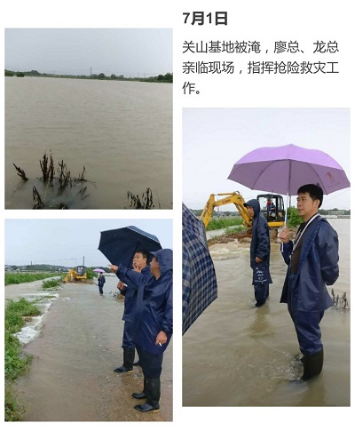 7月1日清早,因河水倒灌,關(guān)山育種基地600余畝試驗(yàn)田,近50000份核心科研材料被淹,一旦損毀,損失無法估量。事關(guān)公司科研發(fā)展,國(guó)家種質(zhì)資源安全,為盡力搶救公司核心科研材料,總經(jīng)理廖翠猛、常務(wù)副總經(jīng)理龍和平火速趕往關(guān)山基地,領(lǐng)導(dǎo)搶險(xiǎn)救災(zāi)工作,經(jīng)過摸底排查討論,迅速制定了搶險(xiǎn)救災(zāi)計(jì)劃。在廖總的領(lǐng)導(dǎo)下,關(guān)山育種基地全體研發(fā)人員打響隆平搶險(xiǎn)救災(zāi)保衛(wèi)戰(zhàn)第一槍,緊張有序地開展搶險(xiǎn)救災(zāi)工作。 7月1日上午9點(diǎn),基地緊急租調(diào)大型挖土機(jī)在基地道路上開挖排水通道,加快排除田間積水,以減少科研材料水淹時(shí)間。為阻止河水倒灌,大家頂著暴雨,無視腳下滔滔洪水,爬上近5米高的閘口,放下河閘,將滔滔洪水堵在了基地之外。為隨時(shí)監(jiān)測(cè)汛情,基地研發(fā)人員自發(fā)自愿地加入巡查隊(duì)伍,24小時(shí)通宵值班,監(jiān)測(cè)水位。 7月2日凌晨2點(diǎn),溈水水面到達(dá)峰值后正緩慢下降。消息傳來,大家連夜行動(dòng),開始啟動(dòng)排澇工作,兵分兩路,迅速行動(dòng),一組前往閘口拉閘泄洪,一組前往田間組裝抽水泵排水。與此同時(shí),在公司的組織下,公司領(lǐng)導(dǎo)、行政人事中心、財(cái)務(wù)中心多名員工和部分2017屆大學(xué)生積極響應(yīng),高度協(xié)同,支援搶險(xiǎn)救災(zāi)工作。 另一方面,7月1日晚上十點(diǎn),西塘河堤出現(xiàn)潰口,公司100多畝鑒定基地被淹,將近6000份鑒定材料被淹,情況危急。公司基地人員劉文生、王偉峰迅速與總部人員匯合,裝沙袋,堵潰口,加入基地保衛(wèi)戰(zhàn)中。7月3日凌晨1點(diǎn),經(jīng)過一天兩夜的奮戰(zhàn),險(xiǎn)情終于得到控制。7月3日上午,鑒定基地積水已全部排出。 積水退卻,但搶險(xiǎn)救災(zāi)工作并未結(jié)束。清理淤泥、清理浮萍、清洗秧苗、噴灑農(nóng)藥等災(zāi)后搶救工作仍在繼續(xù)。在隆平上下一心眾志成城的努力下,這一場(chǎng)來勢(shì)兇猛的澇患最終未對(duì)科研基地造成實(shí)質(zhì)性危害,數(shù)百畝科研材料和鑒定材料得到保存,隆平搶險(xiǎn)救災(zāi)保衛(wèi)戰(zhàn)取得了全面勝利。 部分圖片材料來源于隆平高科企業(yè)號(hào)。