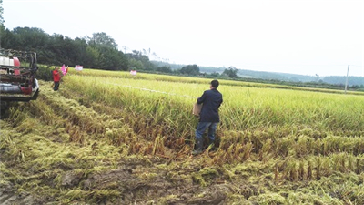 觀摩結(jié)束,檢驗(yàn)產(chǎn)量的時(shí)刻到了,盡管收割途中下起了雨,但隆兩優(yōu)534的產(chǎn)量依然給力,最終產(chǎn)量達(dá)到了1631斤/667平方。對(duì)此,農(nóng)戶們紛紛表示認(rèn)可,很是滿意。