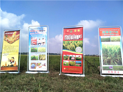 一到觀摩田塊,袁老師就仔細(xì)地閱讀起深兩優(yōu)116的海報(bào)簡(jiǎn)介。