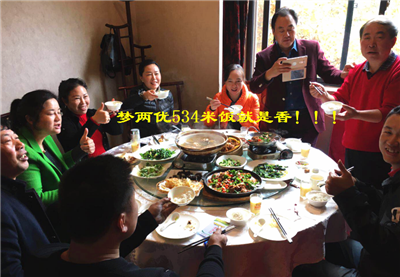 會(huì)后,大家一起品嘗夢(mèng)了兩優(yōu)534的米樣,粒粒晶瑩,香氣怡人,彈性較好,軟硬適口的米飯讓大家贊不絕口,一大盆飯轉(zhuǎn)眼就被搶食一空。