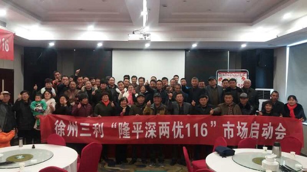2017年的11月份,深兩優(yōu)116以其連續(xù)兩年的優(yōu)異表現(xiàn)在江蘇省的蘇北市場率先啟動。 (一) 11月6日 沭陽縣召開第一場深兩優(yōu)116市場啟動會,沭陽代理商黃總在會上總結(jié)了深兩優(yōu)116的十大優(yōu)點: 超強分蘗 抗病性強 耐熱性好 灌漿速度快 結(jié)實率高 活棵成熟抗倒性好 收割時間彈性大 出米率高 高肥高產(chǎn) 安全穩(wěn)產(chǎn) 得到了大家的高度認可,現(xiàn)場訂購數(shù)量喜人,會議取得了圓滿成功。 (二) 11月16日 徐州銅山縣召開了第二場深兩優(yōu)116市場啟動會,此前深兩優(yōu)116在徐州已有一定的市場基礎(chǔ),連續(xù)兩年以其高抗倒伏,高產(chǎn)穩(wěn)產(chǎn)的優(yōu)秀表現(xiàn)獲得了大家的認可,鄉(xiāng)鎮(zhèn)代理商會上訂購熱情高漲,會后很多客戶直接到倉庫里提貨。 (三) 11月18日 宿遷市宿城區(qū)召開第三場深兩優(yōu)116市場啟動會,這次會議不僅表彰了2017年度在深兩優(yōu)116銷售工作中表現(xiàn)優(yōu)秀的客戶,還頒布了2018年的市場管控規(guī)則,確保市場有序健康發(fā)展,深兩優(yōu)116的品種優(yōu)勢已嶄露頭角。 (四) 11月20日 睢寧縣召開第四場深兩優(yōu)116啟動會,相信睢寧三利農(nóng)資以其優(yōu)質(zhì)的銷售網(wǎng)絡(luò)資源與深兩優(yōu)116強強聯(lián)合,必能在2018年取得優(yōu)異的成績?,F(xiàn)在,深兩優(yōu)116正邁著堅定的步伐走進各鄉(xiāng)鎮(zhèn),我們相信一個百萬斤的大品種即將出現(xiàn),讓我們拭目以待! 選擇興隆 事業(yè)興隆