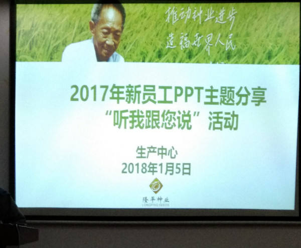1月5日,生產(chǎn)中心2017年新員工PPT主題分享“聽我跟您說”活動在公司三樓會議室順利舉行。公司總經(jīng)理助理鄧總、營銷支持部傅經(jīng)理、行政人事中心企業(yè)文化主管及生產(chǎn)中心員工共計50余人參加。 新員工PPT主題分享“聽我跟您說”活動是生產(chǎn)中心近年來一直堅持的傳統(tǒng),旨在加強生產(chǎn)中心年輕團隊的梯隊建設,提高新員工PPT制作水平與個人演講表達能力,總結與分享在基地的工作經(jīng)歷。每年分享會,新員工總給帶給我們諸多驚喜和感悟,因此,分享會也成了生產(chǎn)中心最受期待的活動之一。 此次分享會共有15位來自各個生產(chǎn)基地新員工進行了分享。大家分別就自己近半年來的工作生活情況,圍繞“自我挑戰(zhàn)”、“成長提升”、“經(jīng)驗分享”、“抓生產(chǎn)質(zhì)量”、“過程監(jiān)控”、“責任心”、“問題解決”、“陽光心態(tài)”等方面進行了精彩分享。他們的分享或激情昂揚、或深入透徹、或幽默風趣、或內(nèi)容豐富,讓我們了解了他們作為一個隆平生產(chǎn)人的經(jīng)歷和成長,盡管他們對工作、對生活有著各自的感悟和收獲,但我們聽到了他們作為一名生產(chǎn)人,作為一名隆平人的共同的心聲,那就是責任、共贏、成長、感恩。 新員工分享結束后,生產(chǎn)中心一家人進行了座談交流。作為前輩,老員工們對新員工的成長進步表示祝賀和鼓勵,同時也提出了他們的期望,希望年輕一輩的生產(chǎn)人繼續(xù)發(fā)揚吃苦耐勞的精神,沉下心來,扎扎實實做好生產(chǎn)工作;養(yǎng)成良好的工作習慣,下到田間地頭,隨時記錄發(fā)現(xiàn)問題,多問,多思考,多向前輩請教。 通過分享會,全體生產(chǎn)人統(tǒng)一了思想和認識,一顆種子悄然萌芽,大家認識到:我們是負責雜交水稻種子生產(chǎn)的,新員工就是我們的“種子”,代表生產(chǎn)中心的希望,他們的茁長成長就是部門的發(fā)展成長。 最好的我們在最好的時間遇到了最好的平臺——隆平種業(yè)。2018,我們蓄勢待發(fā)!